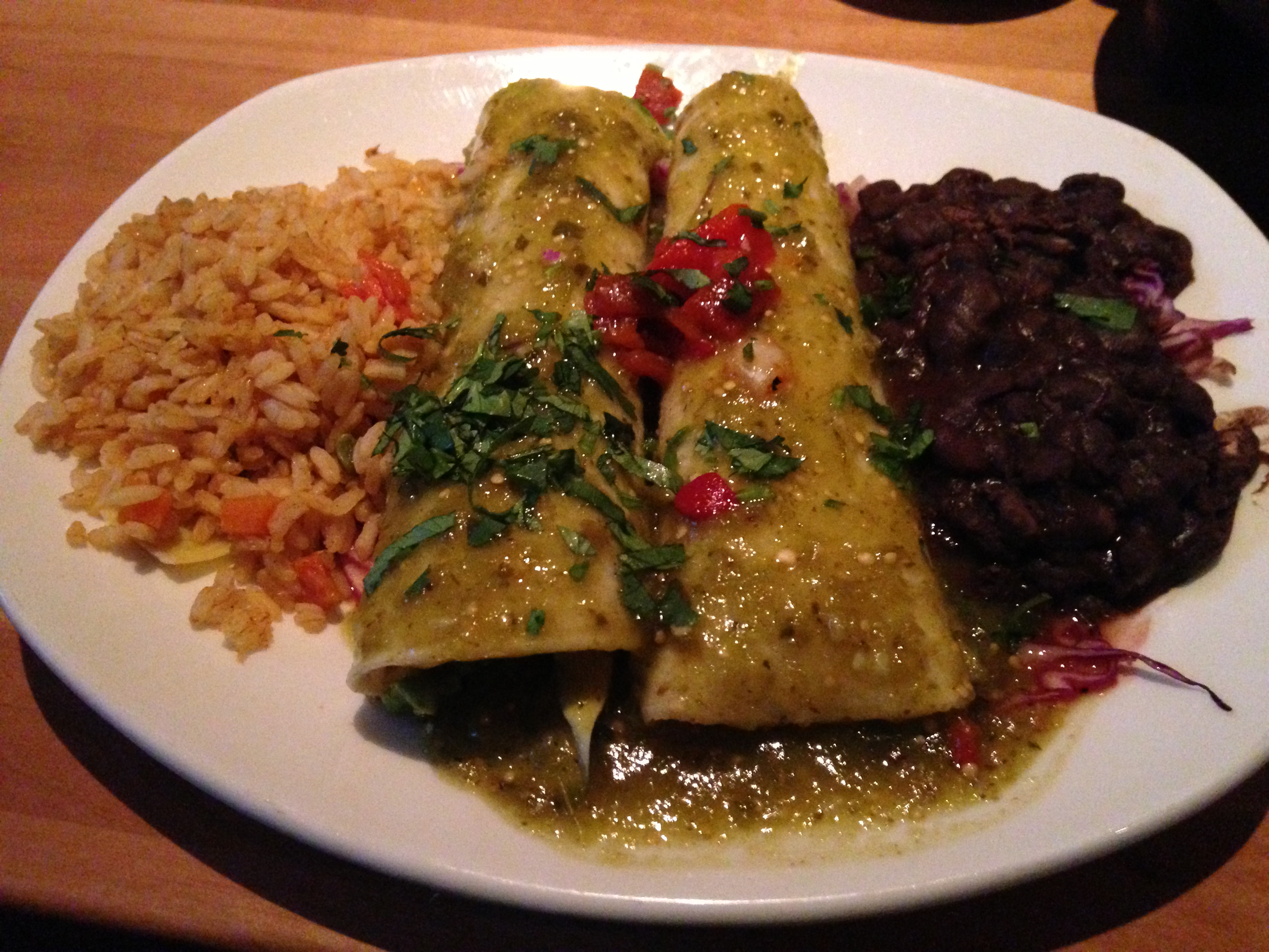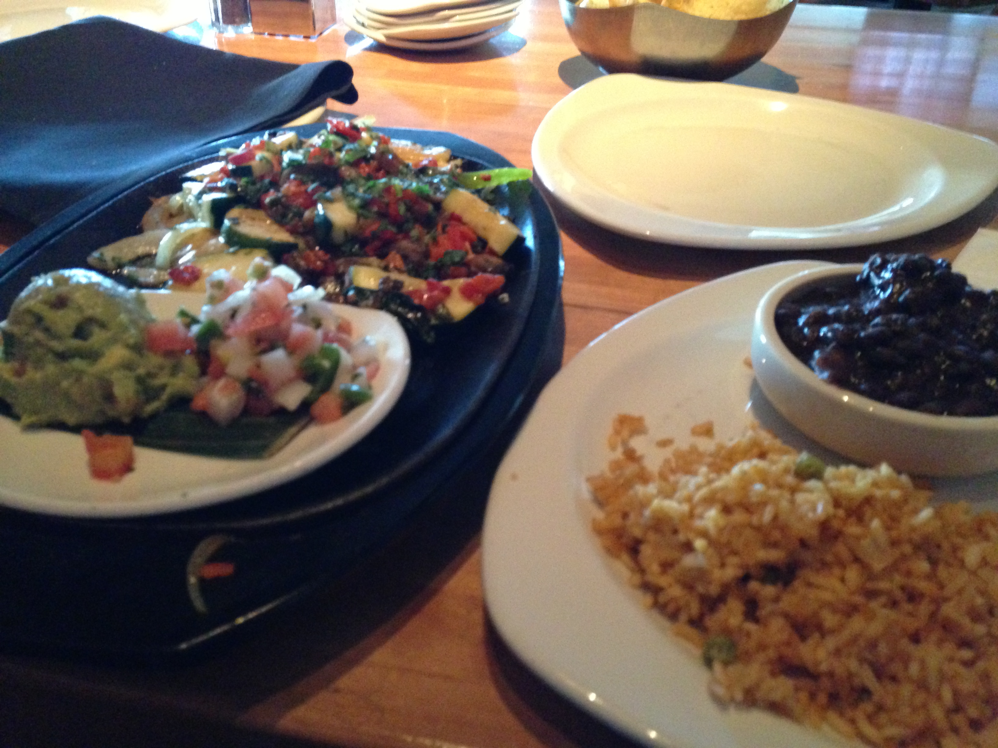 Eating out can be difficult when trying to avoid certain mainstream foods like meat, diary, or gluten. Cantina Laredo is one chain that makes eating out easy. There are even choices, if you know what to ask for. The first photo is of the avocado enchiladas ordered without cheese or sour cream. The second photo is of vegetarian fajitas ordered with corn tortillas and without cheese or sour cream. Both dishes are vegan and gluten free. Even the black beans and spanish rich are safe, according to the staff. I have not reacted, so the vegan part is true. They will also make salads without meat and dairy if you ask. This place is one of my favorites.