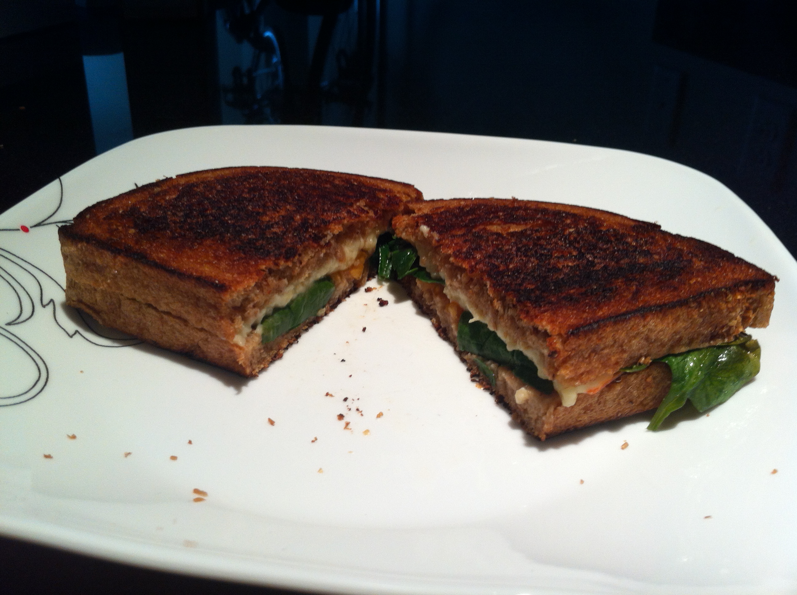 Grilled cheese sandwiches were something I missed more many years. Only recently have there been vegan cheeses I enjoyed enough to cook with. Now I enjoy them when I don’t have time to cook a more elaborate meal. The key to a great grilled cheese sandwich is to not rely on the cheese for flavor. Also, cook on a pan with a lid.