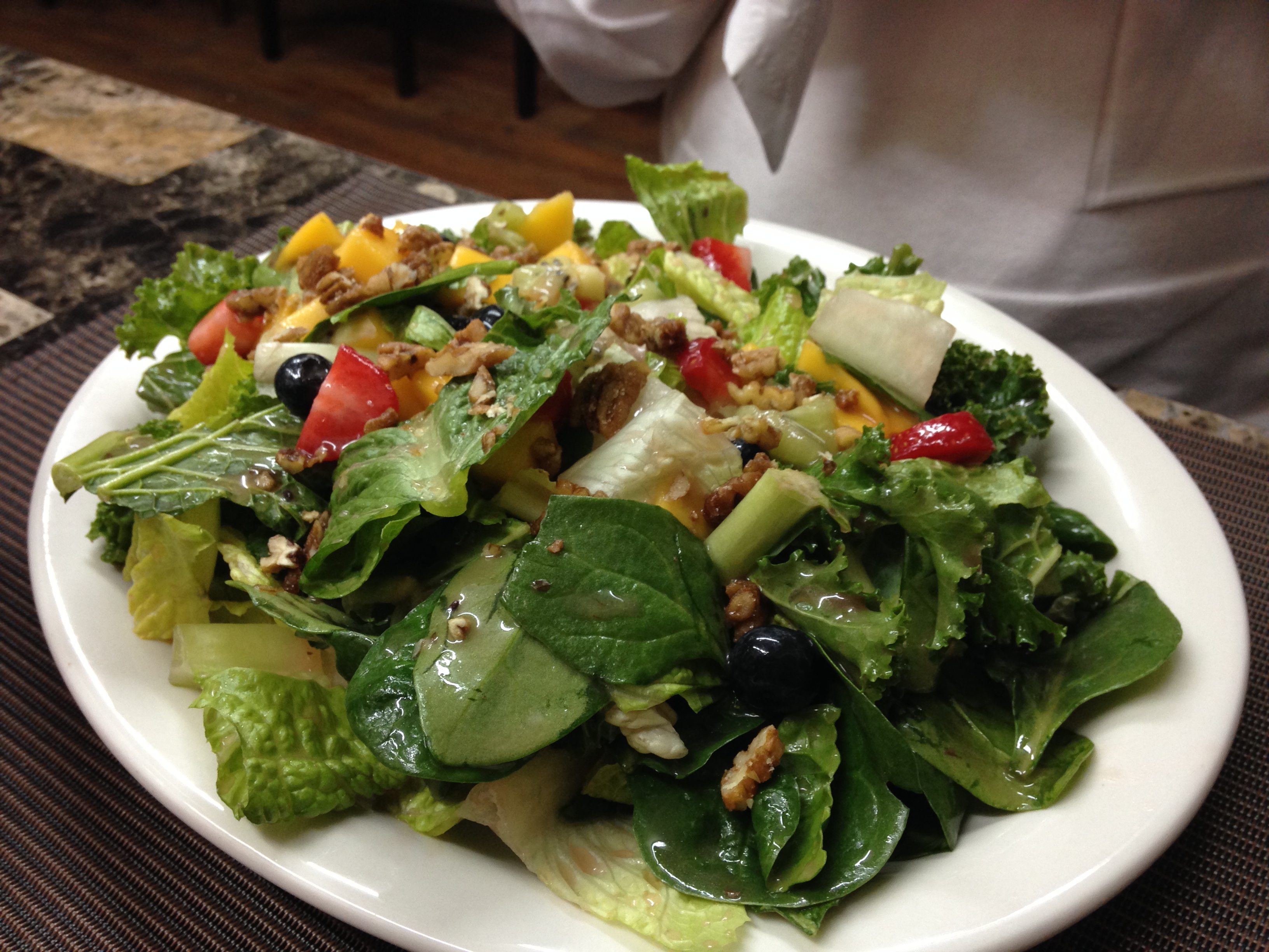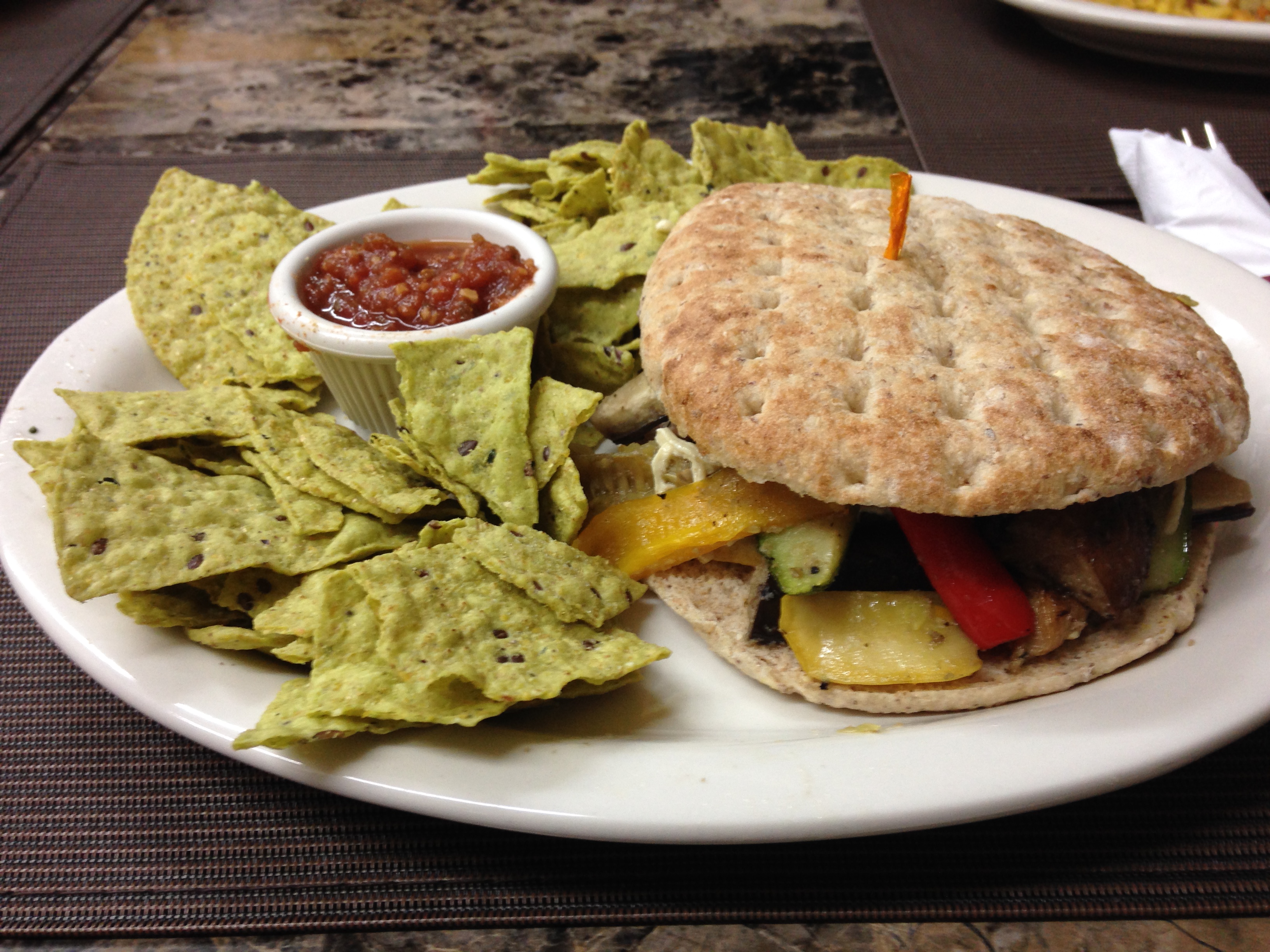 After much contemplation, I ordered the grilled cheese and veggie sandwich, hubby ordered the scramble with garbanzo beans, and the couple we brought with us got the portobello sandwich and the tropical sandwich. The salad looked the best of all our dishes.