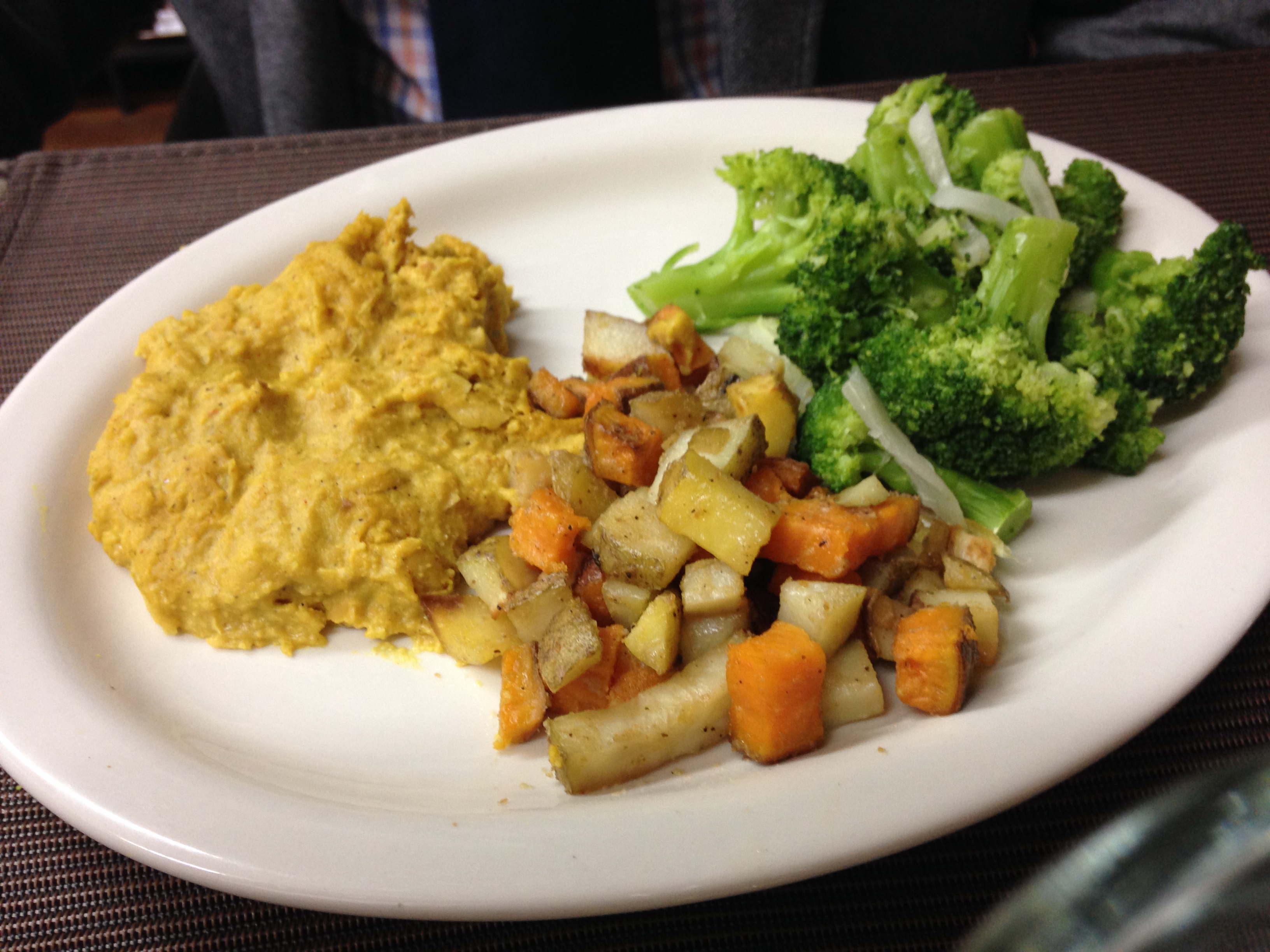 Because I can’t pass up a vegan dessert, hubby and I shared a chocolate cupcake. The flavor was very good. There were also cookies out for anyone to try that were very tasty. It seems the desserts are worth the trip. However, for dinner I give the place two out of five vegan cupcakes. The food was okay, but I won’t go back for it. I should probably try the yoga studio though. I love yoga.