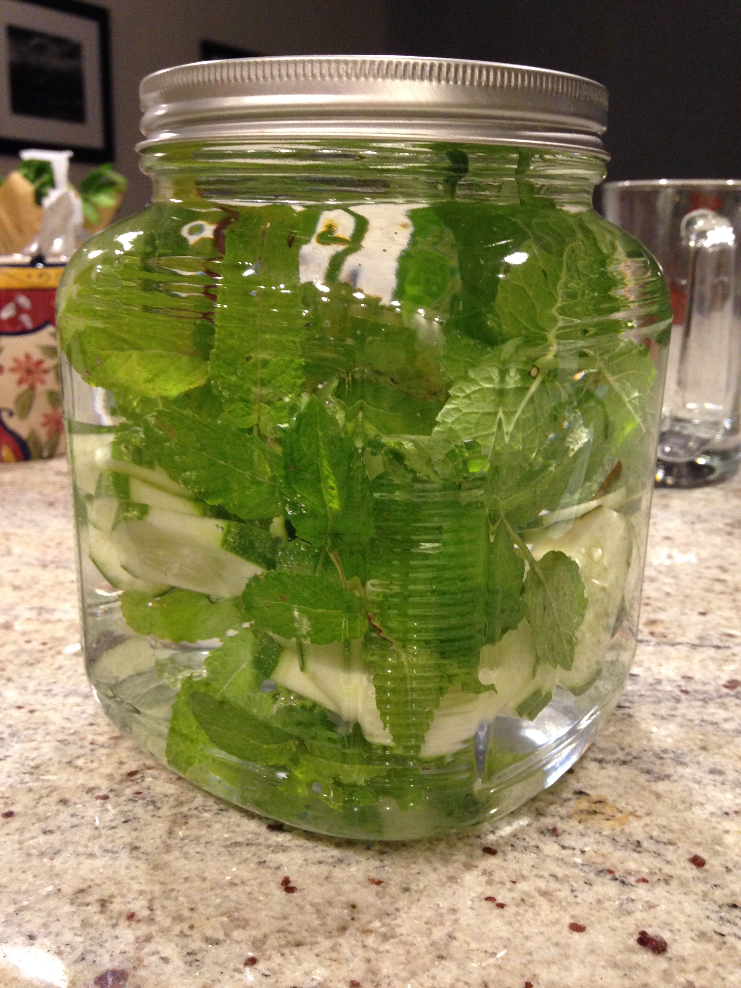 Place all ingredients in a large jar or pitcher. Add filtered water until full. Cover and set in fridge for at least eight hours. I let mine sit overnight. Try to drink within 24 hours.