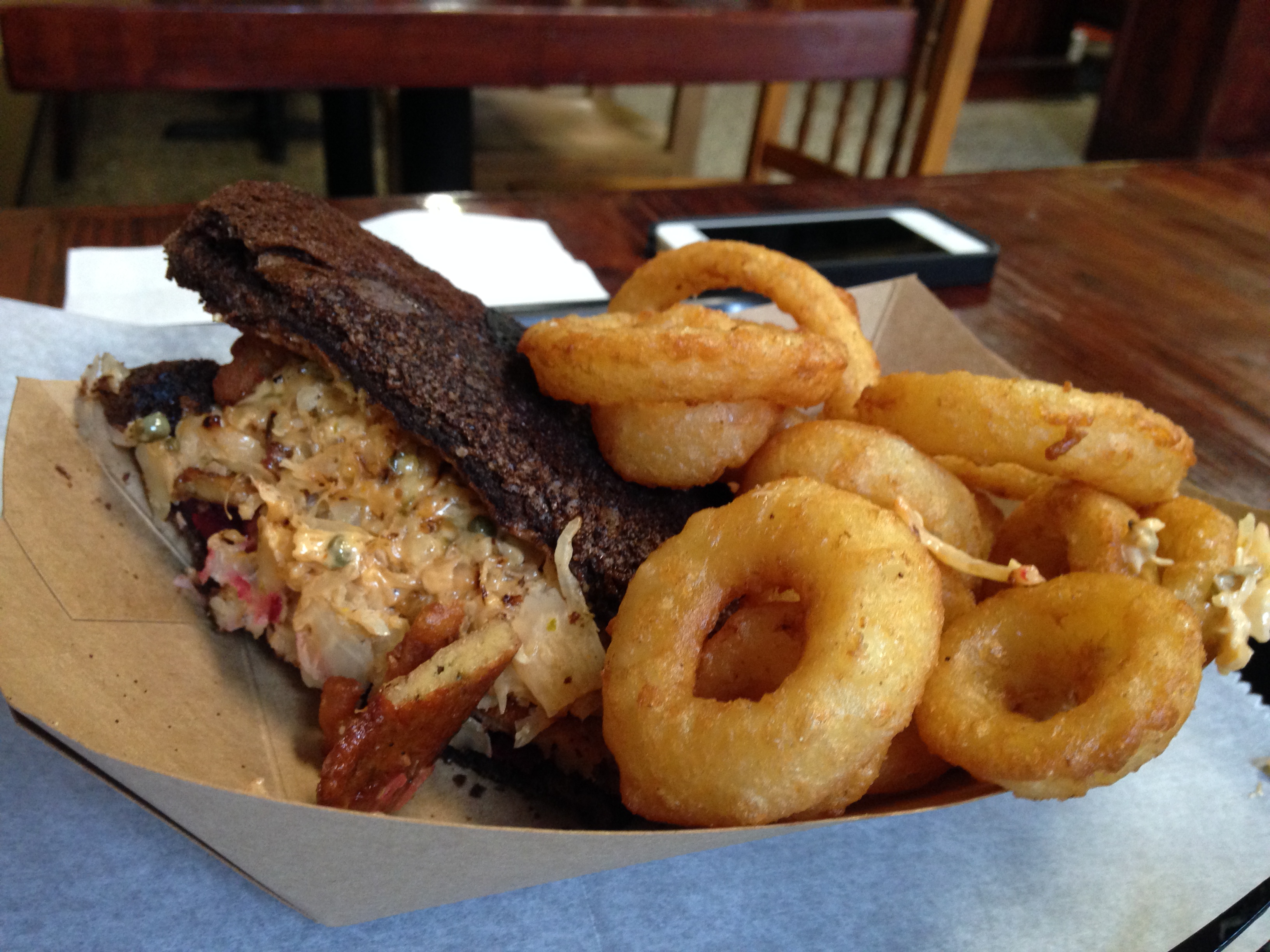 The picture is of their vegan ruben and onion rings.