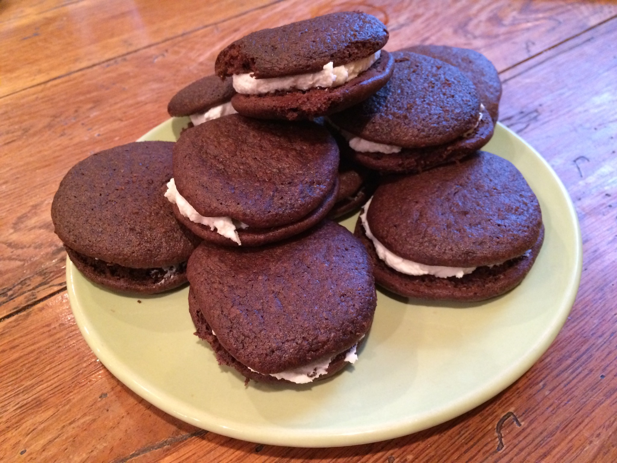 Every year my girlfriends host a vegan cookie making party for the holidays. Today I made these super yummy whoppie pies. The recipe is from one of my favorite vegan bakeries, Sticky Fingers in DC.