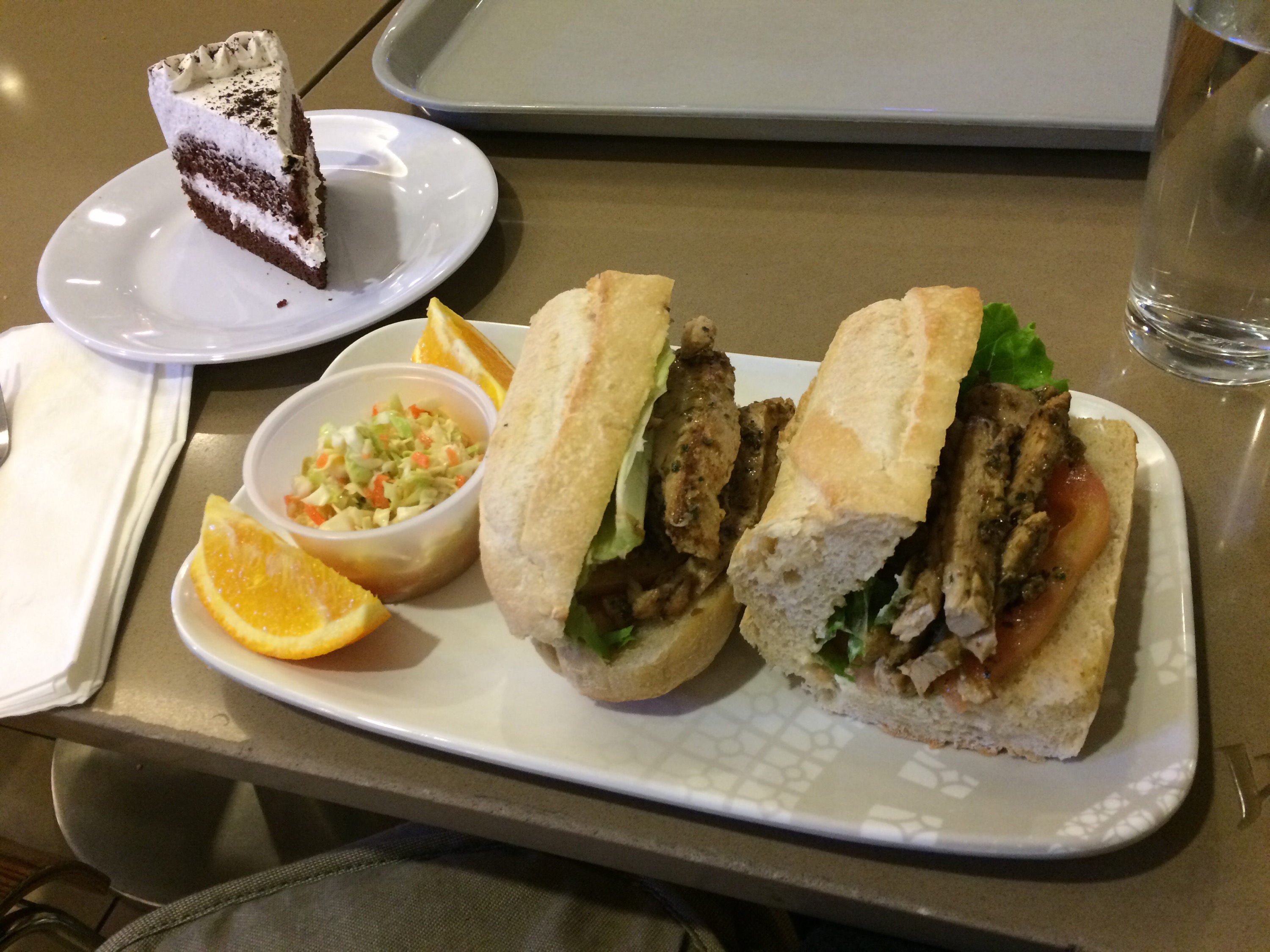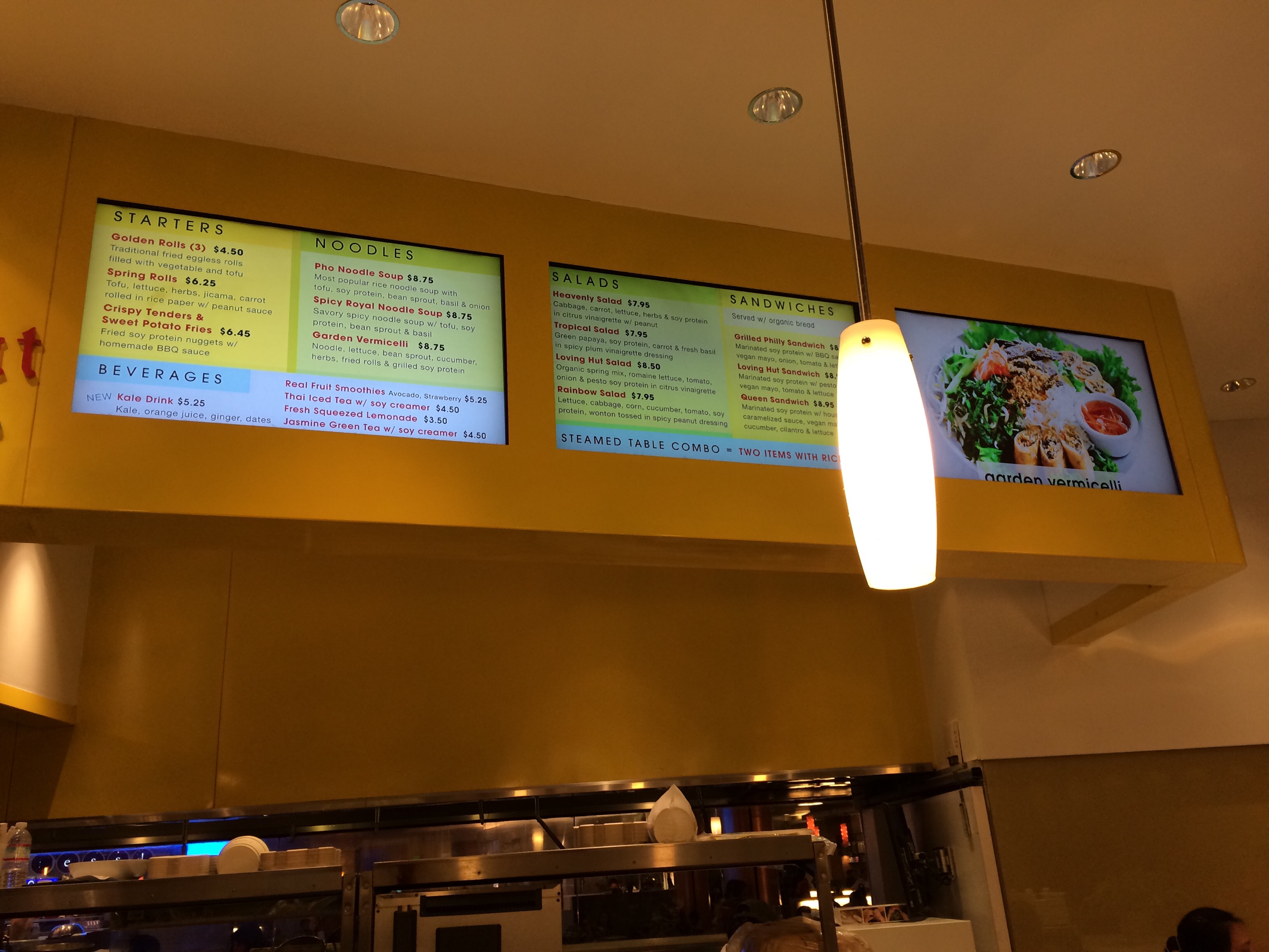 There is a small menu and options in a case. They also always have excellent desserts. All vegan! I ordered the Loving Hut Sandwich and a piece of the Oreo chocolate cake.