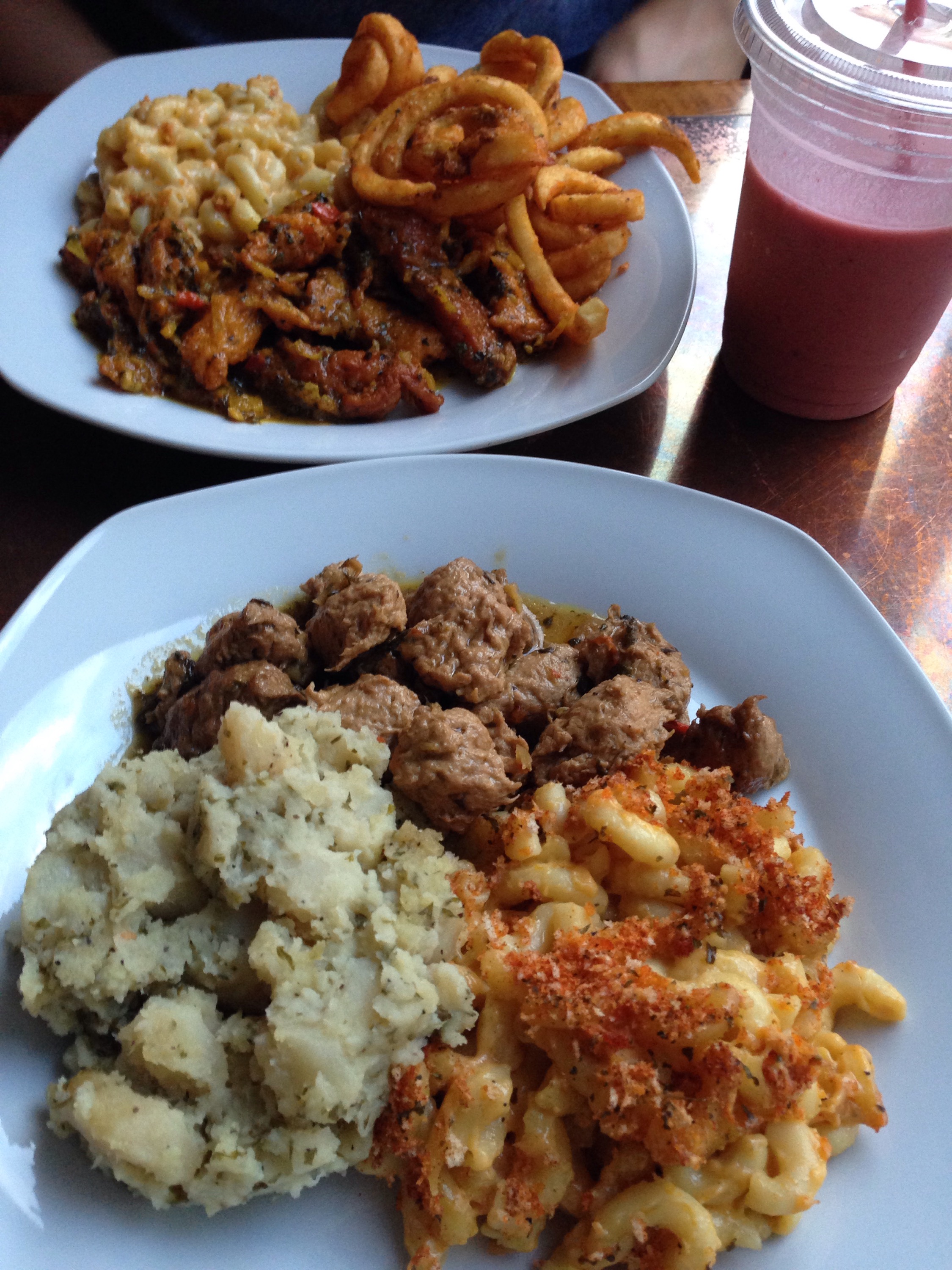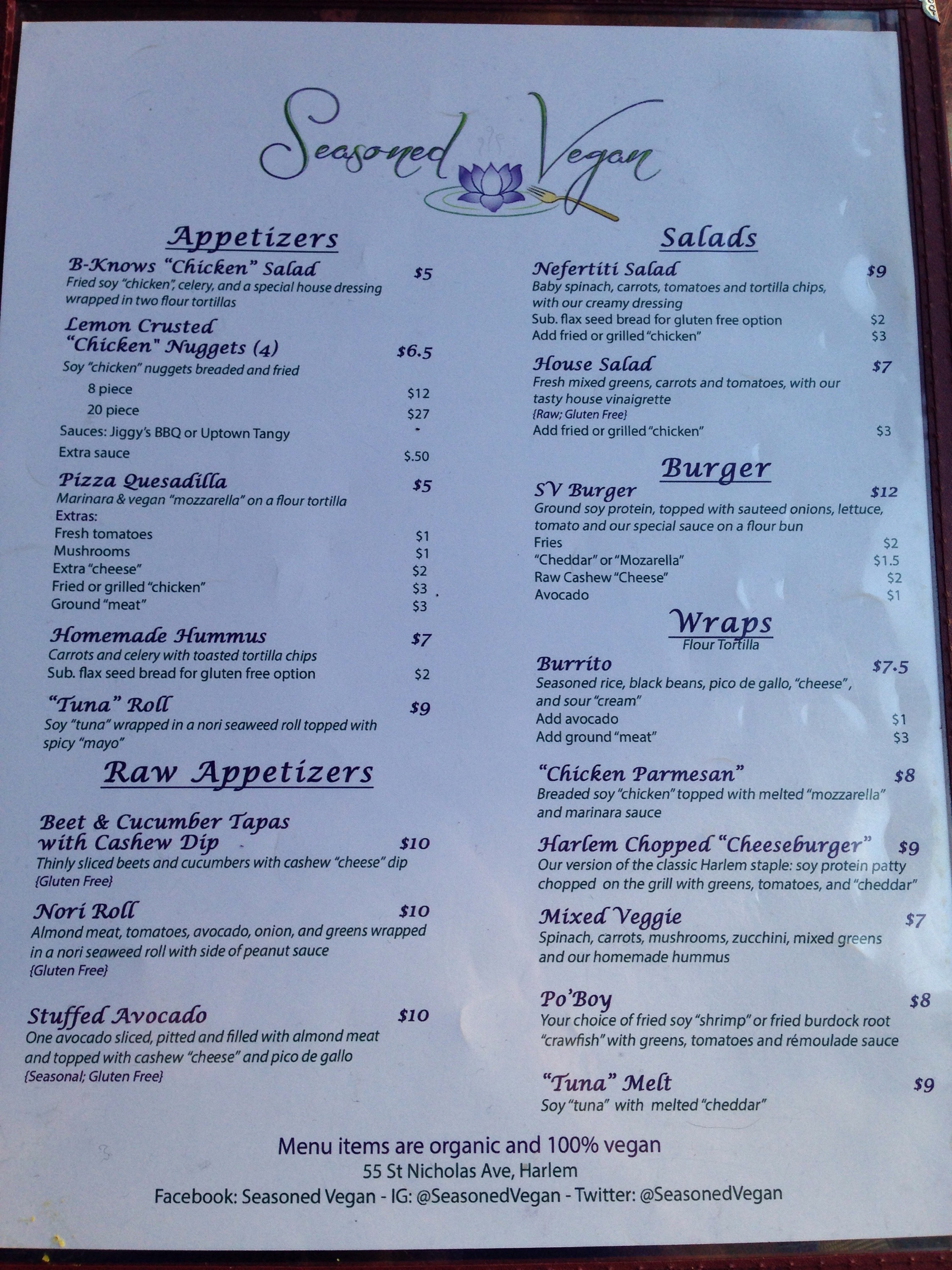 I just had the yummiest of meals. Seasoned Vegan lives in East Harlem of Manhattan in a cute area of town with lots of friendly people. It’s easily reached by the 2 or 3 trains. We totally pigged out.