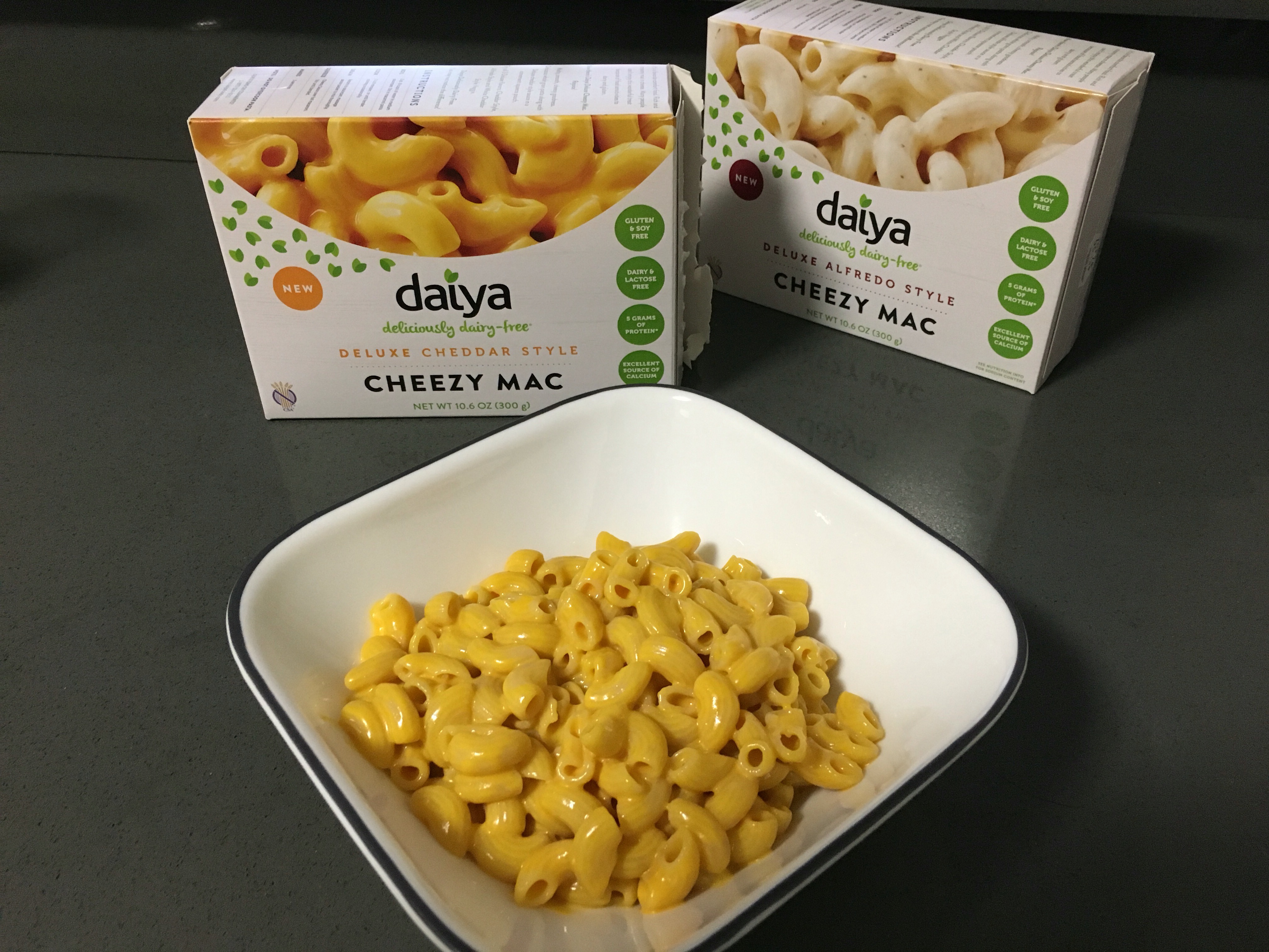 Yummers! If you like Daiya cheese and miss the days of easy mac and cheese, this is wonderful. I have only tried the cheddar style so far, but was not disappointed. Gluten free and a packet of ready to go cheese makes for a wonderful and easy treat. I say treat because it is high in calories. A side dish or snack to share for sure.