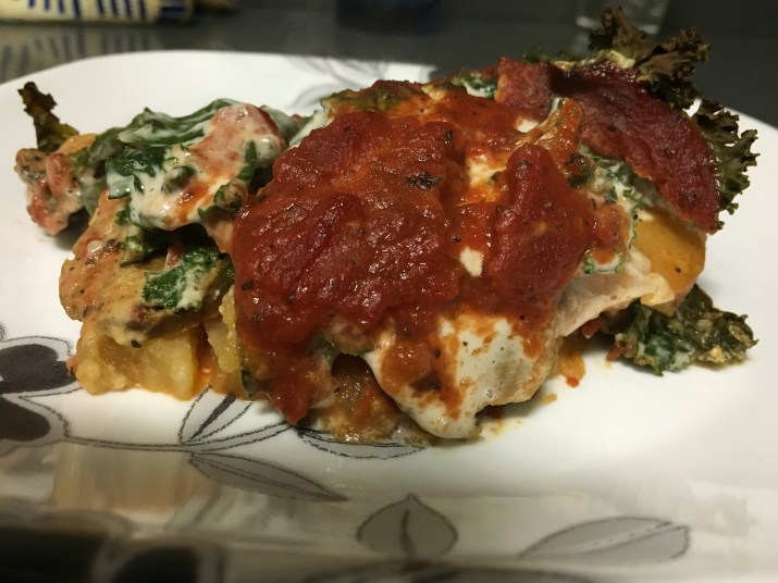 I love lasagna, but it always takes me forever to make and the noodles are usually my biggest frustration point. One night I decided to use very different ingredients and layer them together like lasagna. We scarfed this down!