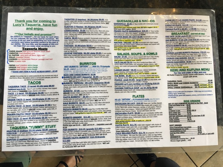 Staying in Hilo, Hawaii for a few days, I wanted to try the local options. I was thrilled to see VegNews had an article about where to eat in the most recent issue and I decided to start with Lucy’s Taquieria.