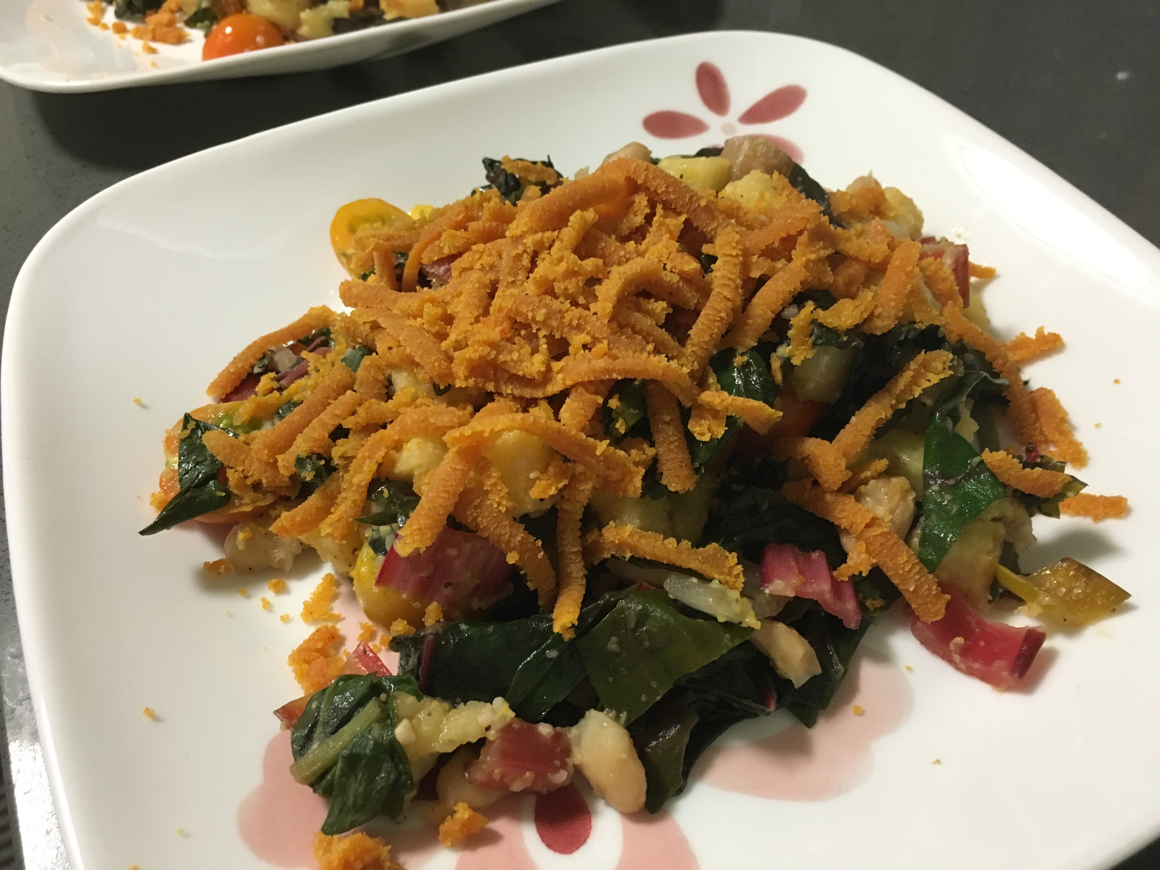 Smokey Parmesan cheese, shredded, or other flavorful vegan cheese, for topping