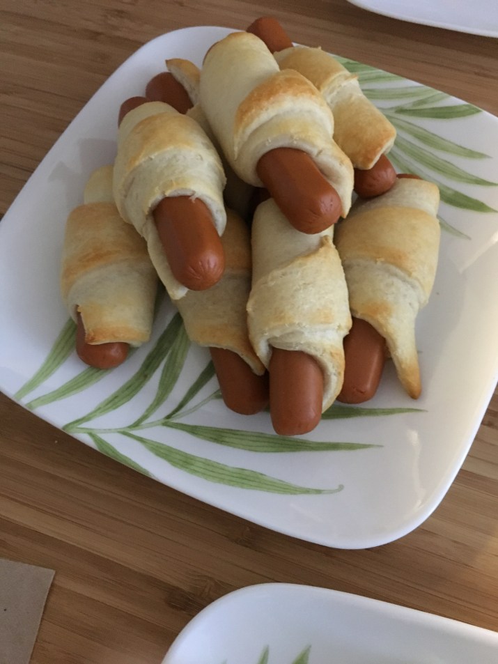 I made pancakes, of course, and he ate more than anyone else at the table. Score! I also made him grilled cheese with smoked tofurkey slices. He liked this so much he asked for it instead of the one meal he didn’t like. I also made pigs in blankets with steamed broccoli stems. He devoured these, along with hubby who only likes the tops of broccoli. They make a great broccoli team!
