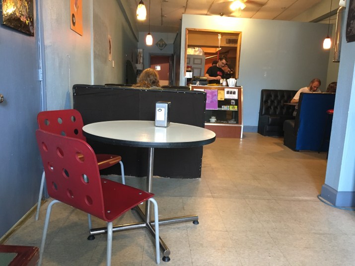 Handy Diner in Denver is a true hole-in-the-wall. A tiny place with a tiny sign in the window. Everyone enters on the side of the building into a room with mismatched tables and chairs.