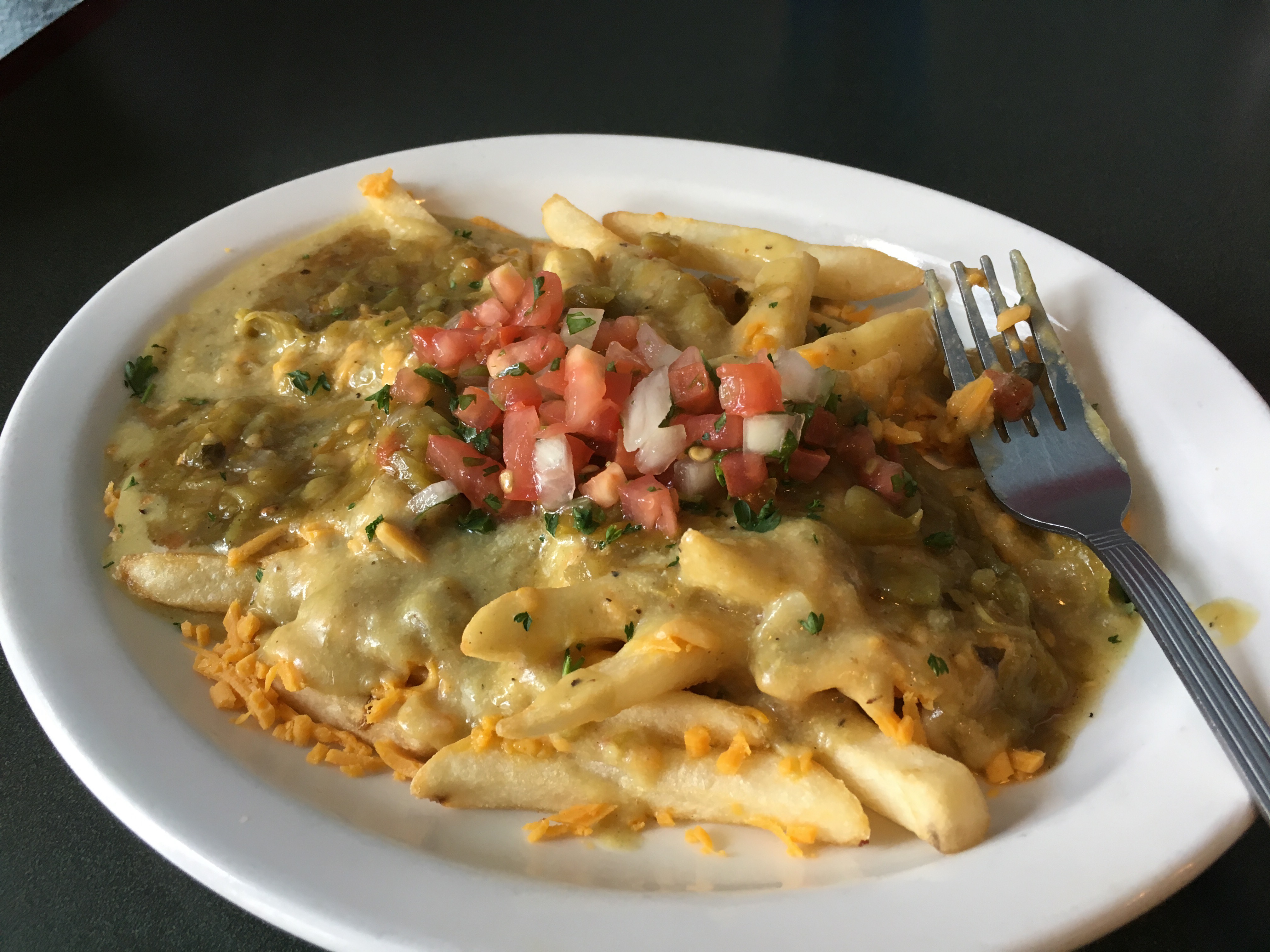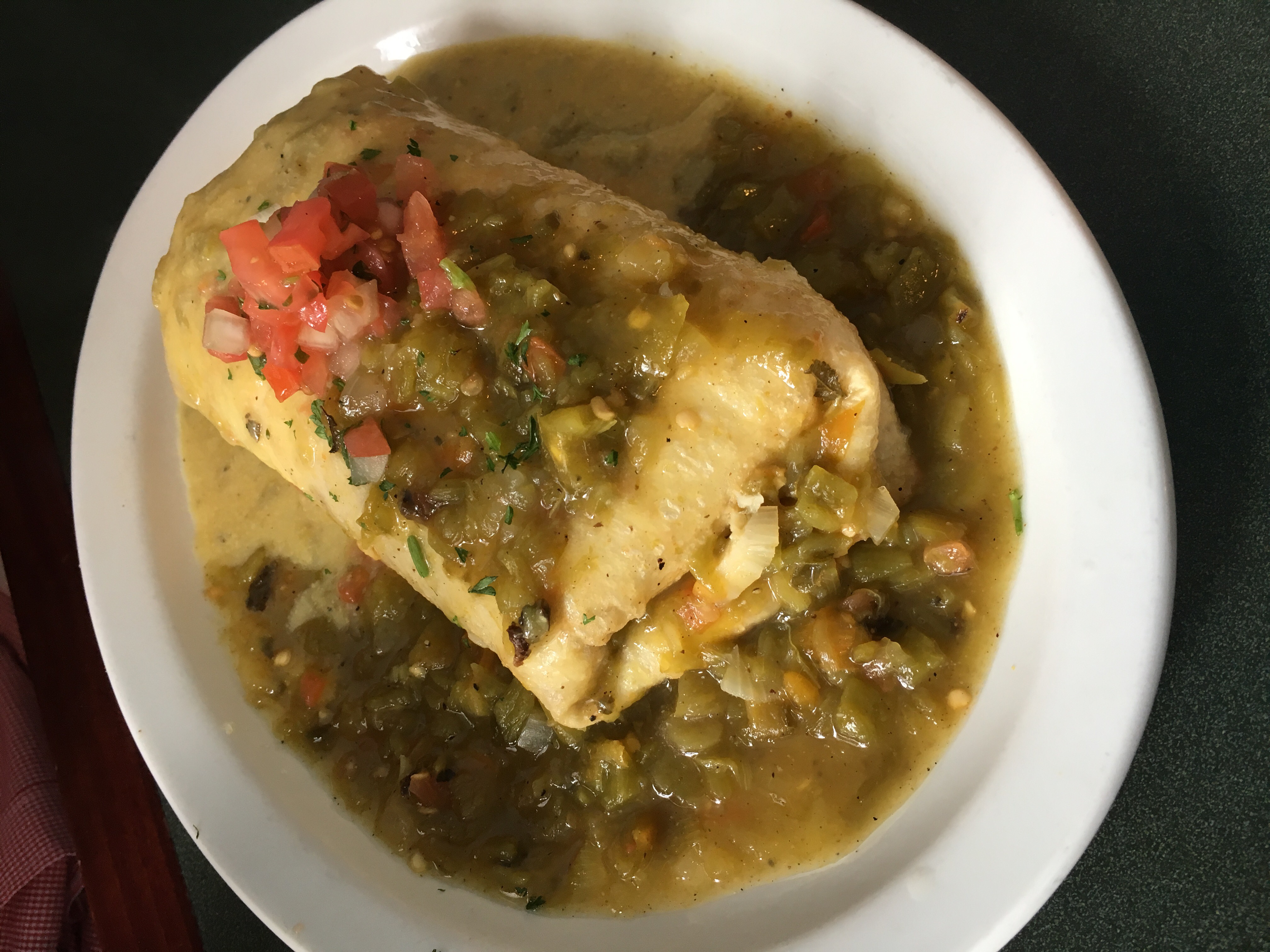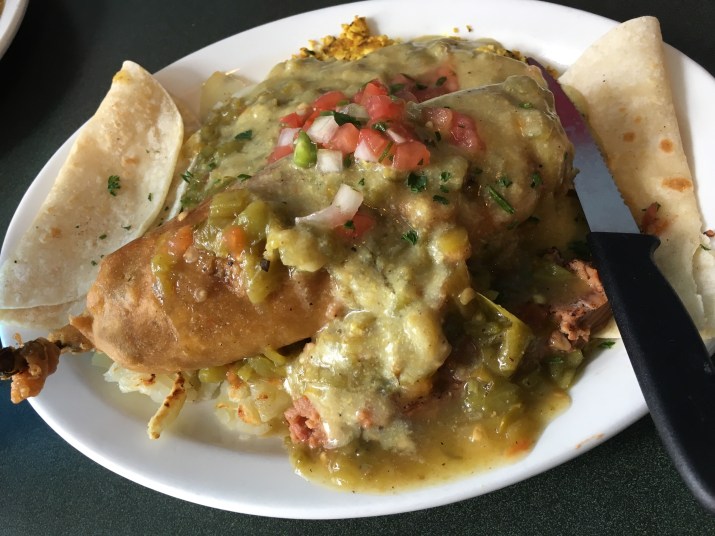 The the food is wonderfully New Mexican comfort! Green chili, one of my favorite things, is the prominent vegetable on the menu.