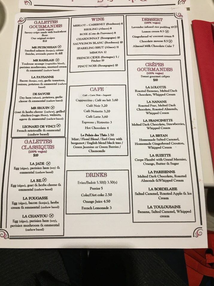 Hubby surprised me, I adore surprises, with reservations to the vegan French restaurant, Delice & Sarrasin in Chelsea. I didn’t even realize this was a thing! Apparently about 18 months ago this cute place switched from a traditional cream and meat heavy menu to a fully vegan one. We had such fun!