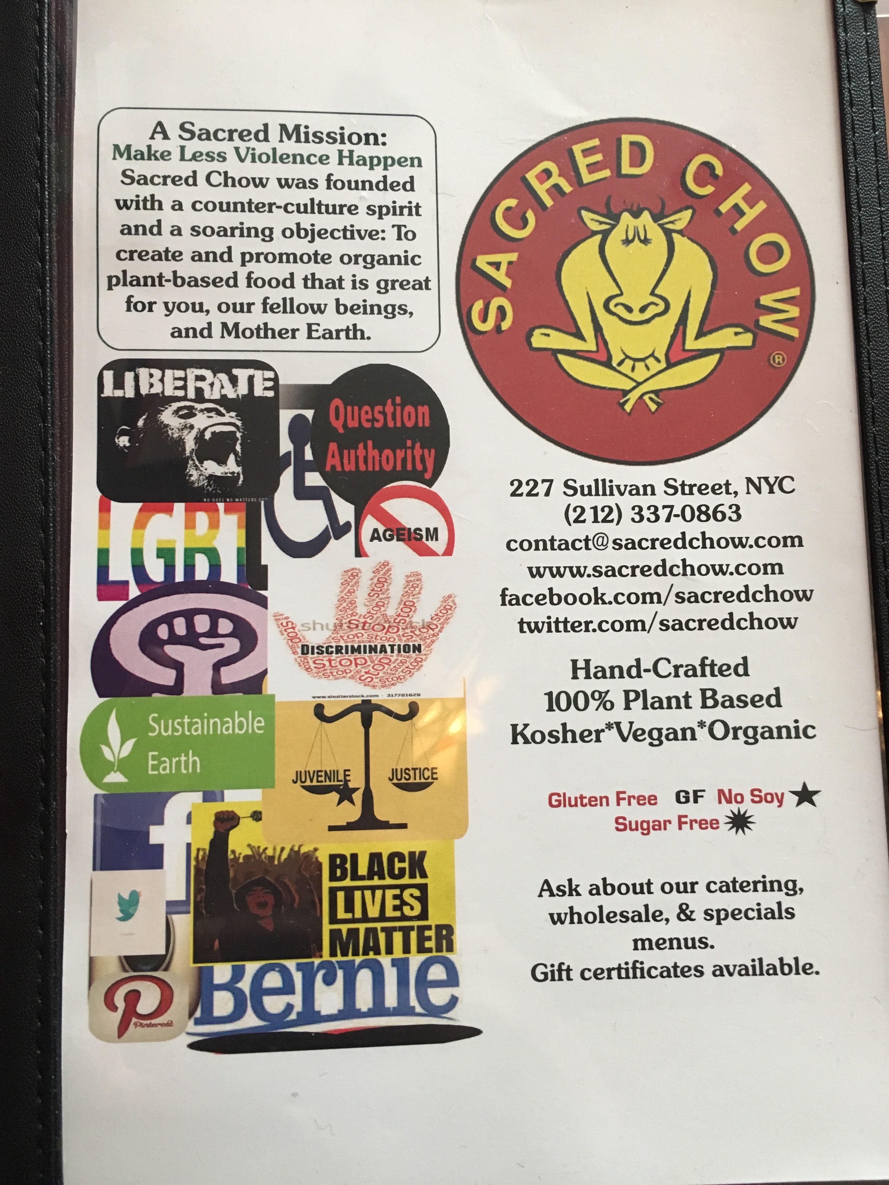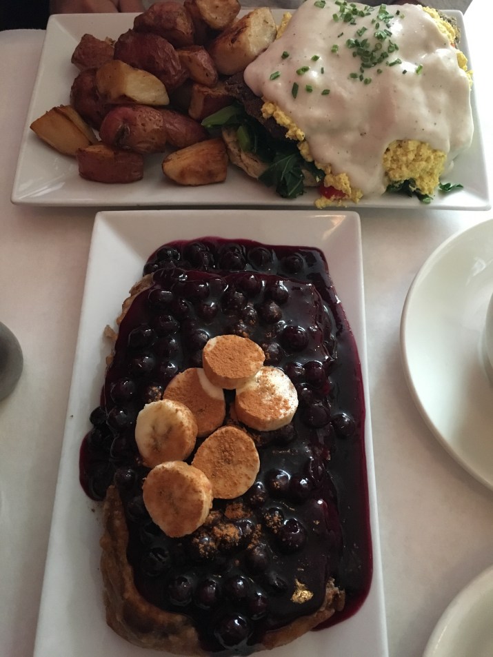 Hubby and I decided to try a new place for brunch today. Our top three rotation places are Blossom on Columbus, PeaceFood, and Candle Cafe West. It’s hard to break habbit, but we were up for a challenge! I jumped online to look up top vegan brunch places in NYC. This site recommended several places we have not tried for brunch and Sacred Chow was on the way to our ultimate destination for the day. Score!
