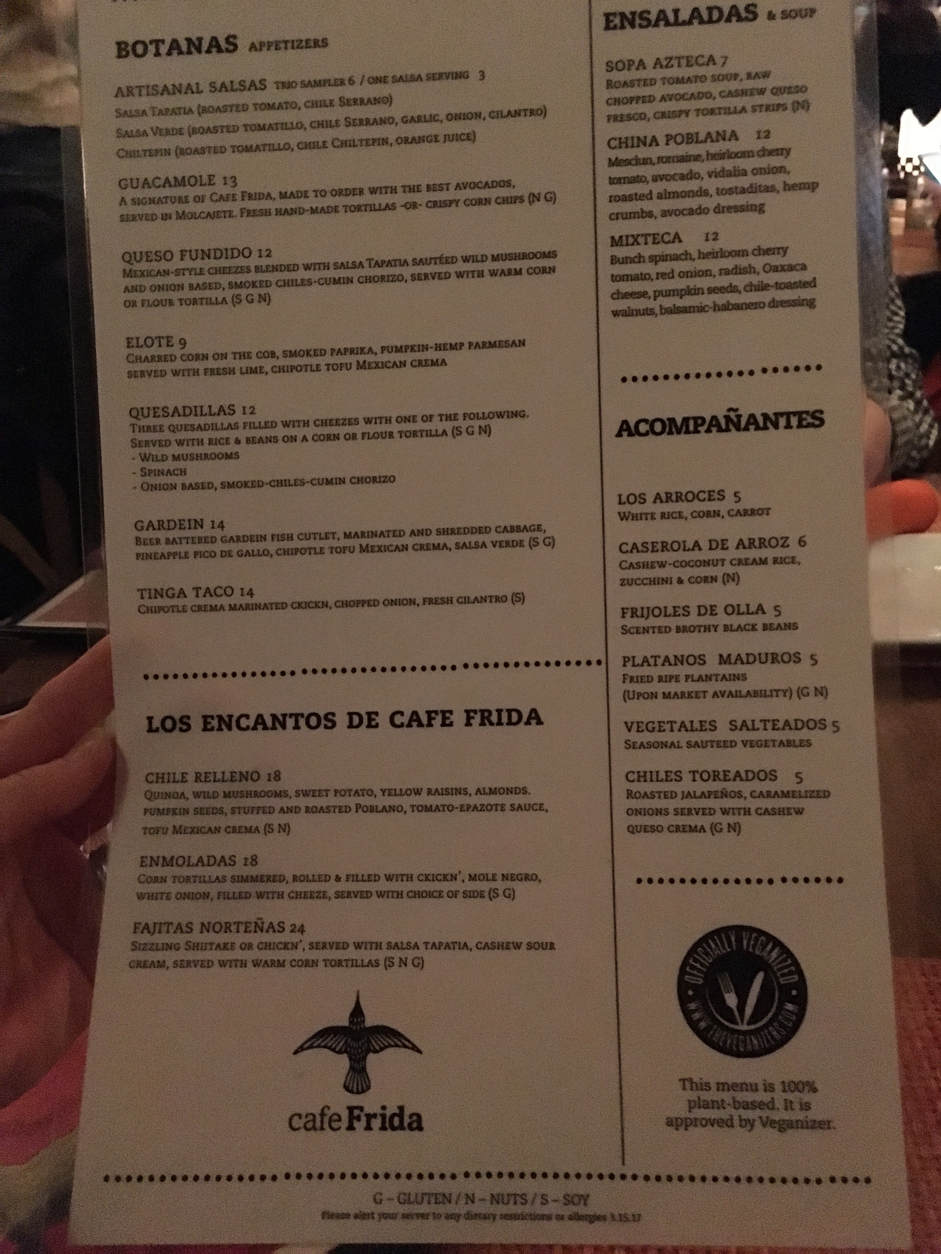 Cafe Frida recently added a vegan menu to their traditional Mexican options. So of course I had to check it out.