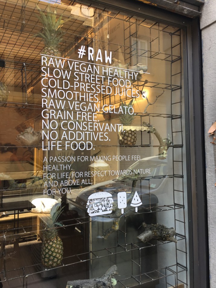 After so many days of heavy pasta and bread, I was thrilled to try #Raw in Florence. Hubby doesn’t normally go for raw restaurants, but he had already eaten a big brunch. It meant I was able to enjoy on my own.