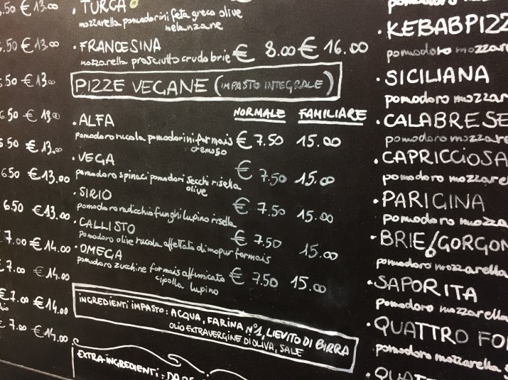 I was thrilled to find a pizza place in Venice, Italy with clearly labeled vegan option.