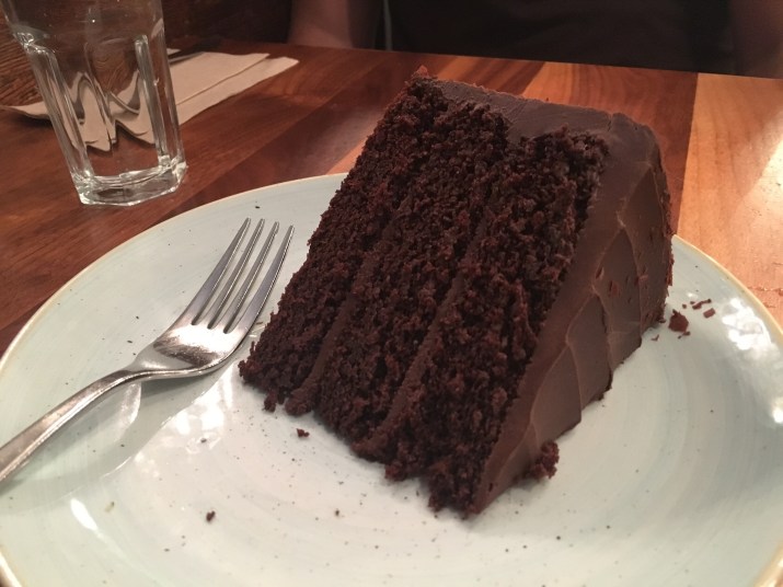 Though we were fairly full, we had to try a dessert and decided on the chocolate fudge cake. Though, to be honest, it was hubby’s second dessert after the banana split shake.