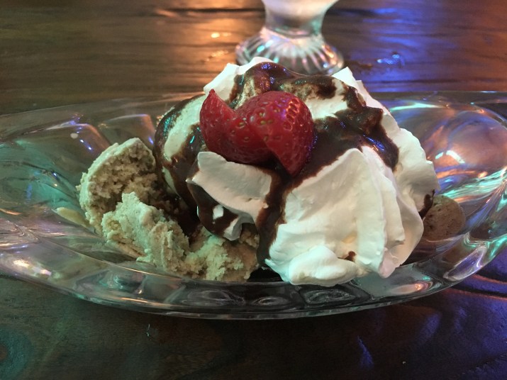 Thursday we made it to Front Street Cafe and were overwhelmed by the options. Many were from their regular menu, but we had never been, so all was new to us. I can’t remember everything, but we started with heirloom tomato focaccia, shared a giant kale Cesar salad and Mac n Cheese, then I had spaghetti squash with black bean balls and hubby had a noodle dish. The meal ended with mango flan and carrot cake.