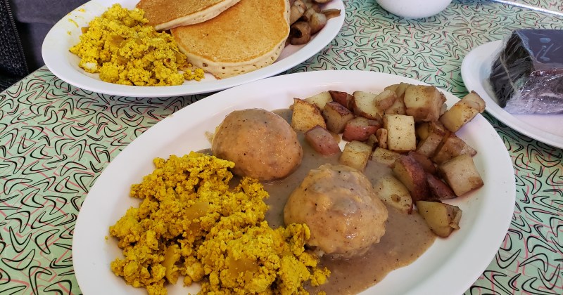 Story time: Years ago I visited DC for the first time and was excited to visit this new bakery, Sticky Fingers. They were in a tiny basement location and I got my goodies to go. I think I remember one table in the space. I enjoyed every bite of the vegan treats I scored. Since then they have grown and moved into a bigger space. Or two, I haven’t followed that closely. Sticky Fingers now offers more than just sweets. With my new trip to DC, I couldn’t wait to relive that delicious moment.