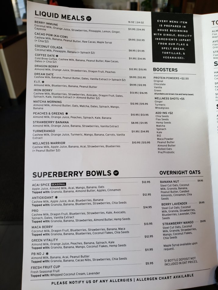From a surly order taker, I ordered a peaches and greens smoothy and the Forager soup. I really enjoyed my selections.
