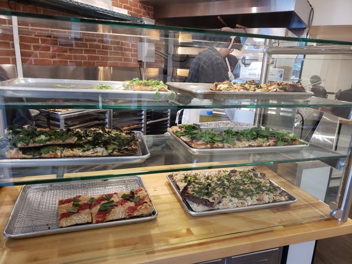 The founder of Blackbird Pizzeria has opened a new pizza place in Center City Philadelphia and it is delicious. Upon walking in, there is a case of the slices available.