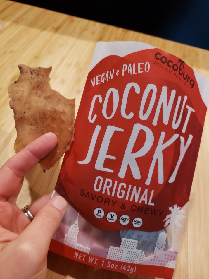 I enjoy a good plant based jerky every once in a while. The spicing is usually a fun moment of the day. Unfortunately, this jerky didn’t provide that moment. I like that the pieces are large, but the flavor was too strong of coconut. The coconut with jerky spices did not go well together.