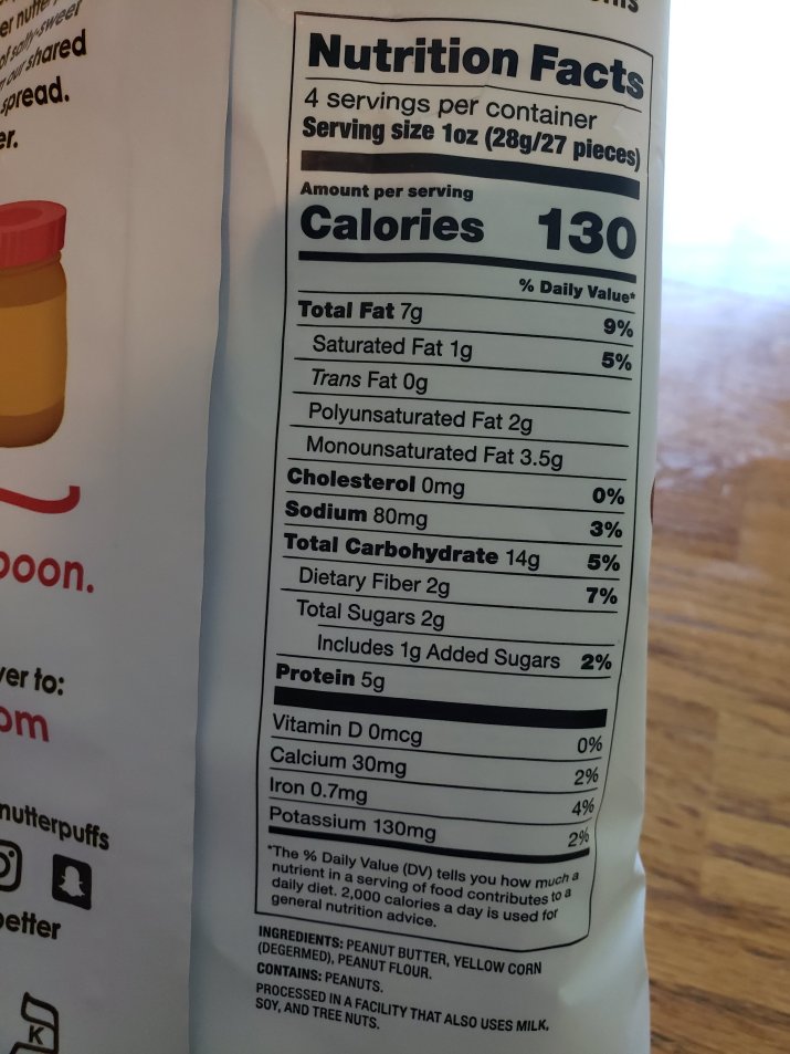 I enjoy eating crunchy things. Popcorn, crackers, carrots, you get the idea. While traveling I was in a random grocery store in a small town looking for lunch foods. In addition to my regular hummus wrap, I found these Nutter Puffs. Ingredients are peanut butter, corn, and peanut flour. Intreaging! No added sugar, no oil, and gluten free? Worth a try.