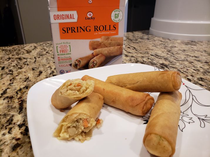 I got them crispy in my toaster oven, waited for them to cool a bit, and then was disappointed by the flavor; bland. Too bad. I say skip these Lucky brand Spring Rolls.