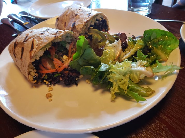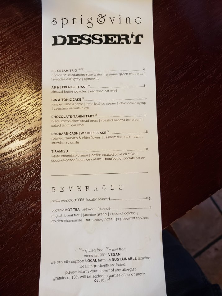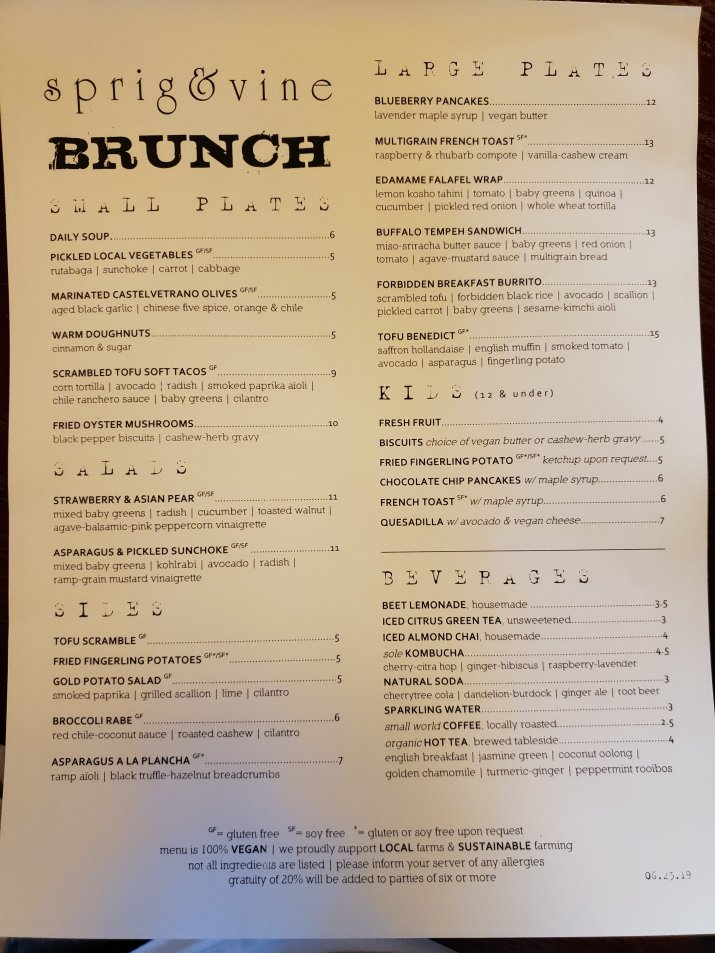 Friends and I made a day trip to New Hope, PA today to try Sprig & Vine. We had such a nice time! All the food is vegan and the space is simple. We made a reservation, which was a good idea since the space is small. Water and our waiter came quickly, which is not true for all restaurants.