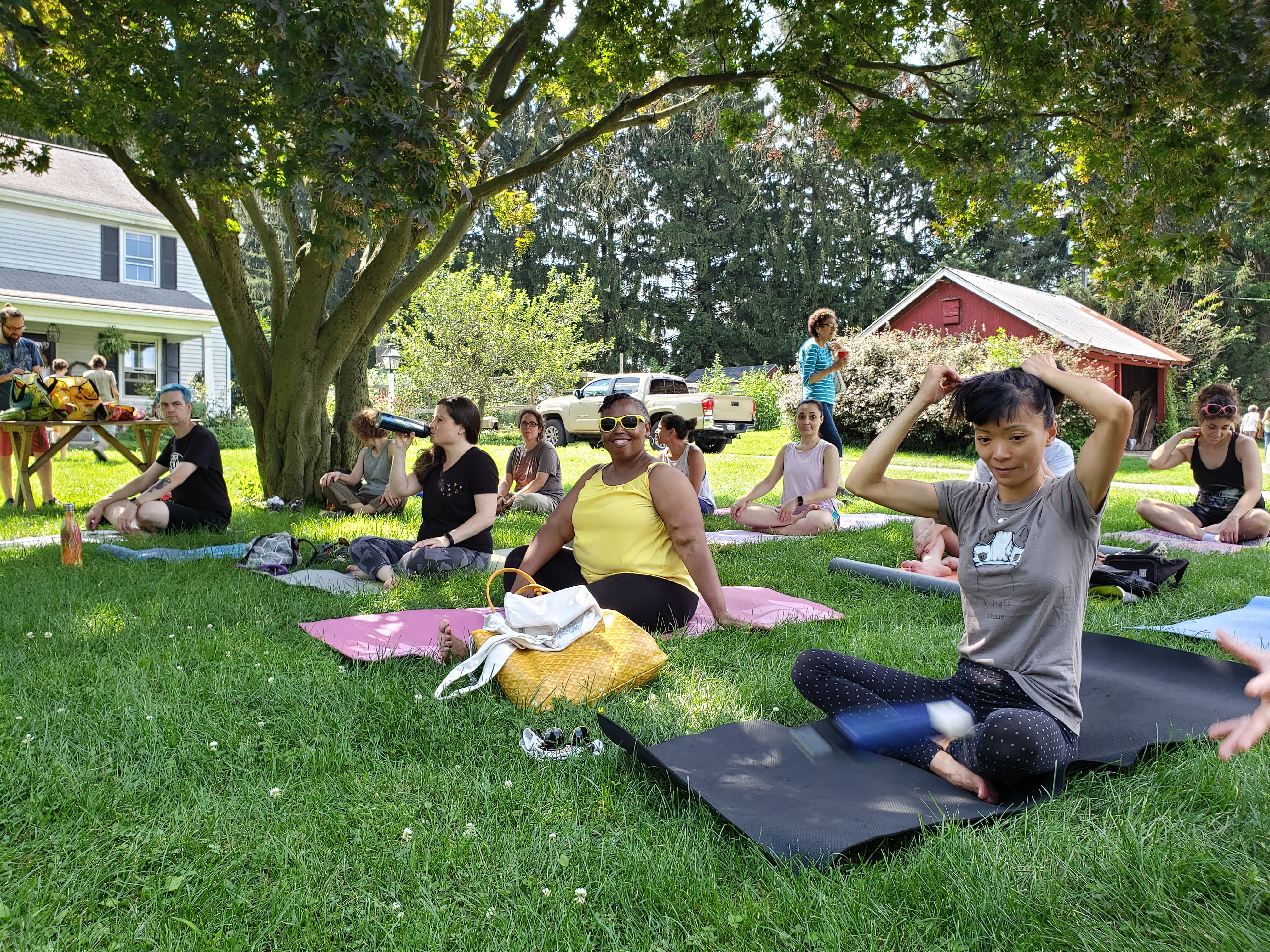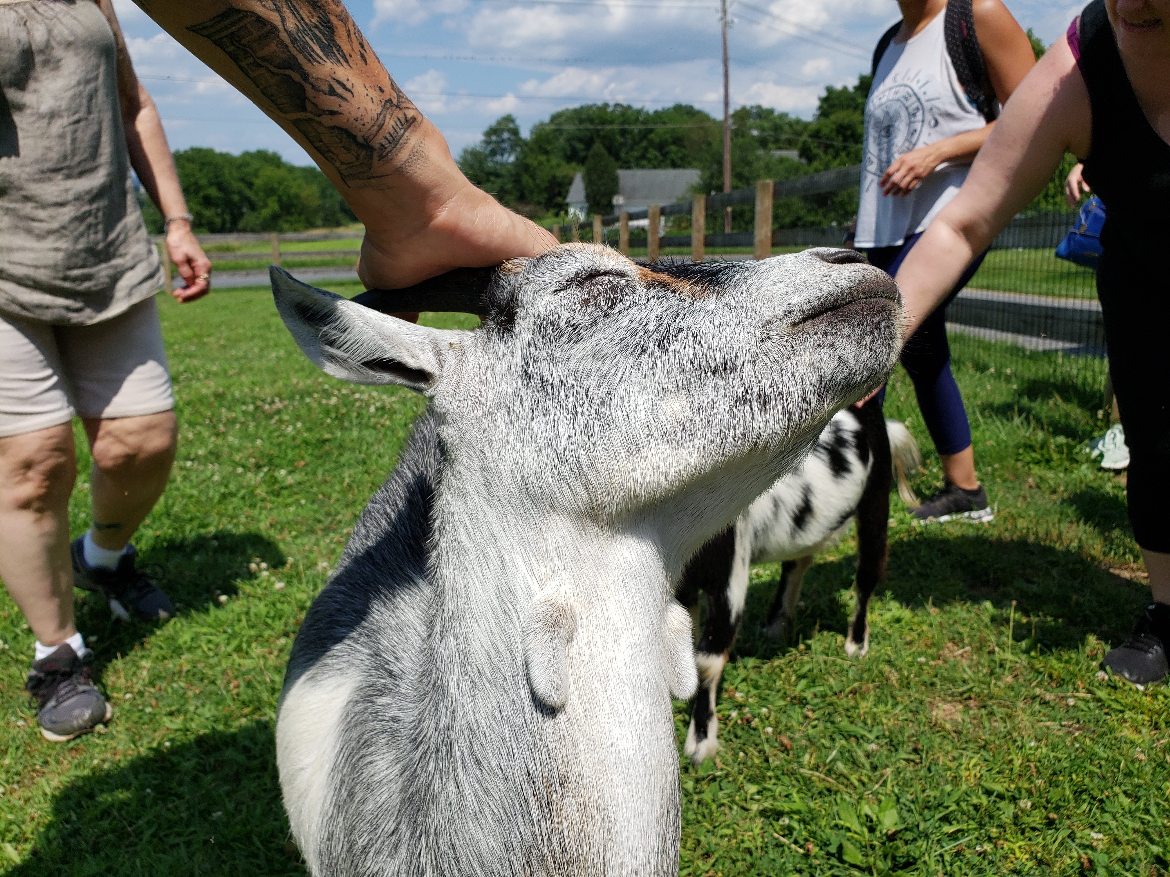 I don’t even know where to begin about how incredible of a day we had at Lancaster Farm Sanctuary. We were the largest group they had ever had visit at once and we were only 25 people. The best part? Beyond spending a day with amazing people, loving on animals, eating great food, doing yoga in the most beautiful space under the shade of a large tree, and making new friends? I raised hundreds of dollars for the continued care of the beautiful animals.