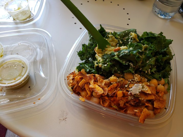 Salads, smoothies, smoothie bowls, coffee and fresh juices were all available. Hubby and I both grabbed a Kale to Cesar salad and refilled our water bottles.