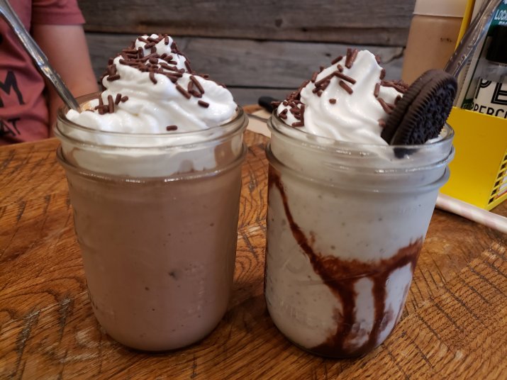 Hubby picked out the Impossible Melt, El Catrin salad, and a chocolate peanut butter shake. I ordered the Cali Fresh salad with black bean, roasted corn, and poblano patty, waffel fries with Uptown Style, and a mint chocolate cookies n cream shake.