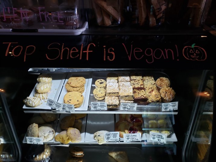 It was great fun picking out something from the clearly labeled vegan section of treats.