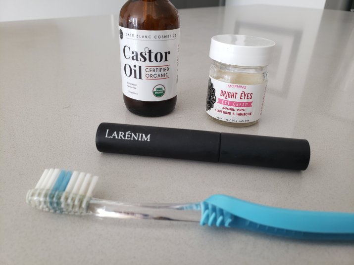 At night, I place a little organic castor oil on my eyelashes and eyebrows to encourage hair growth. It has helped keep everything looking like it always did.