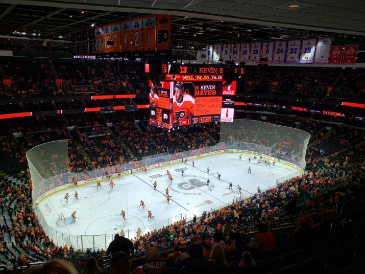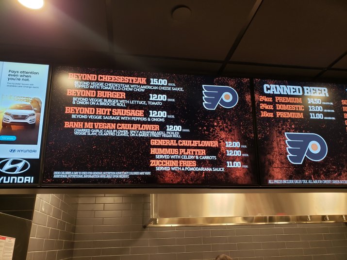 I got to go to a Flyers game, the local ice hockey team, at the Wells Fargo Center in South Philadelphia. I was worried about eating at the event and did a little research. In 2013 this center was named the third best arena for vegan eating by PETA. Woo hoo! But I wasn’t sure if this was still the case. A lot can change in six years. Also, where exactly would I find options? I ate a snack before heading there, just in case.