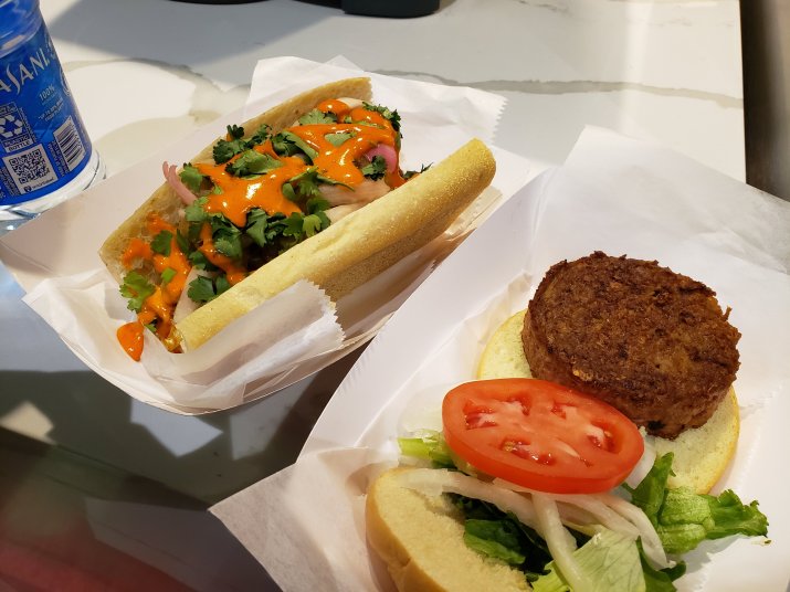 There were a few Beyond options, but only one thing labeled vegan. I happily ordered the Banh Mi Vegan Cauliflower. Hubby picked out the Beyond Burger.