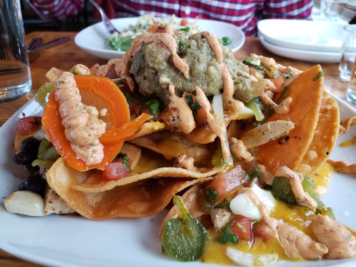 We had a little trouble deciding between brunch, Tex-Mex, or Italian food. Of course I ordered nachos to start! There is also kombucha on tap. Score!