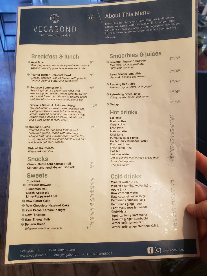 After a long flight with no vegan options, I was ready for something healthy! Being Christmas Eve, I was unsure what would be open in Amsterdam. Luckily, Vegabond popped up as an open option and only about 10 minutes from our hotel.