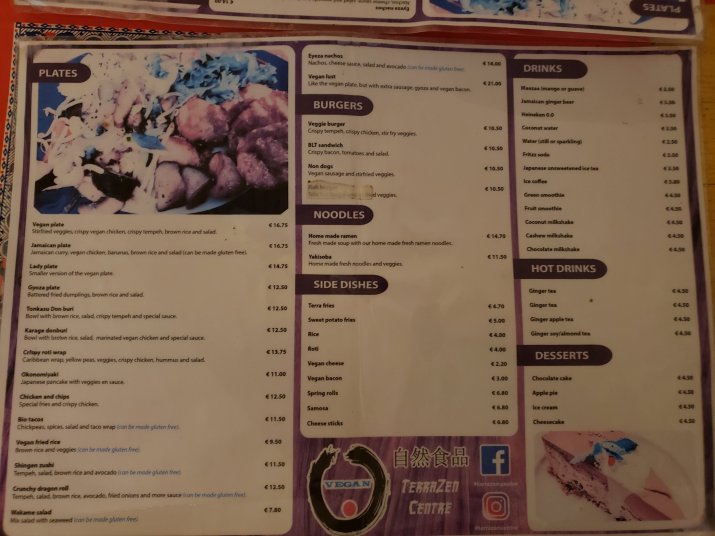 A quick search revealed TerraZen Centre, an all vegan restaurant, between the bike shop and our hotel. Off we went!