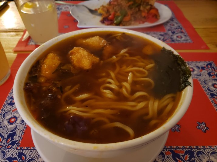 I picked out the Home Made Ramen and Hubby selected the Vegan Fried Rice. We each also got tea. Ginger apple for me and ginger for Hubby. The apple added a nice sweetness to my fresh ginger tea.