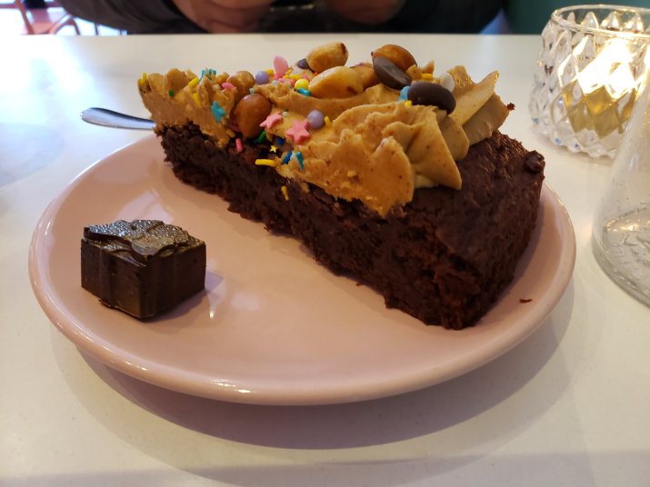 This trip we had a little room and tried their peanut butter brownie and a chocolate.
