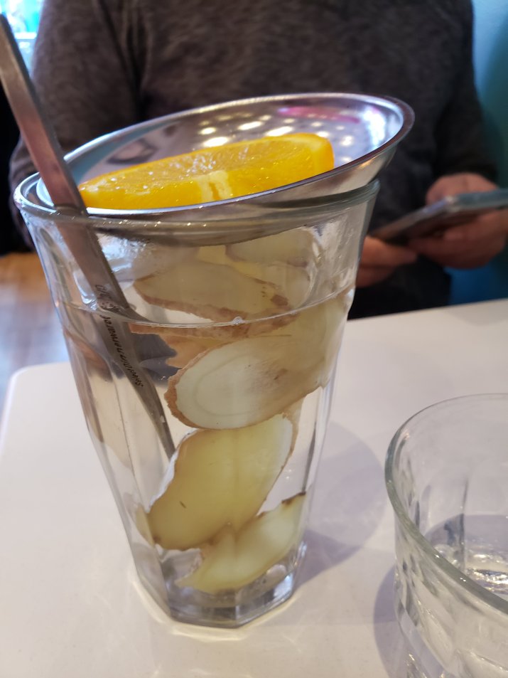 One thing I have liked about Amsterdam overall is how tea is often made from the actual ingredients. Hubby ordered ginger and orange tea. That is exactly what he got.