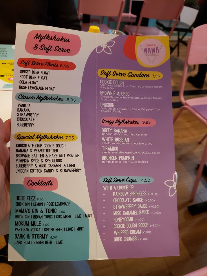 Still hankering for good vegan burgers, we headed to Deer Mama Vegan Mylk & Burger Bar in Amsterdam. I was very excited about the prospect of a vegan milkshake.