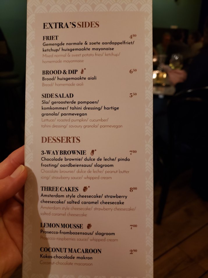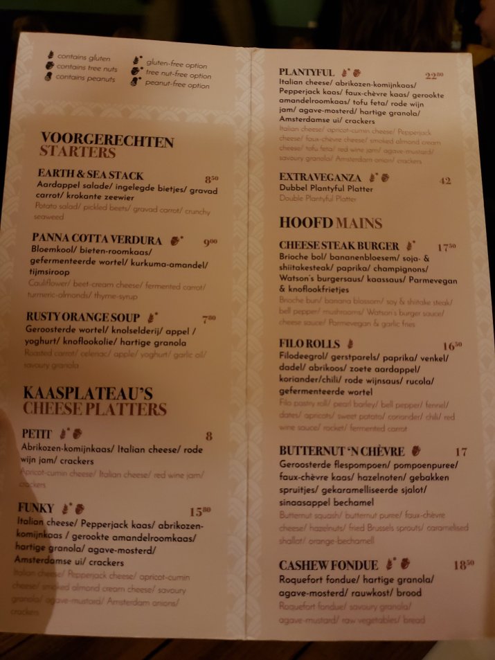 Our last night in Amsterdam we decided to visit the vegan restaurant a local had recommended. She said it had the best vegan cheese she had ever enjoyed. That is quite the endorsement!