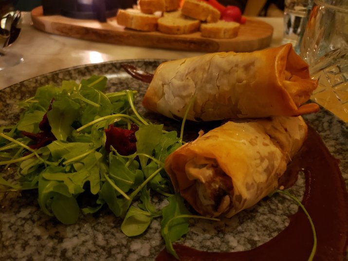 The filo roll was just okay. Bland on flavor and served room temperature. Hubby didn’t like his fondue and didn’t even finish it; too salty.