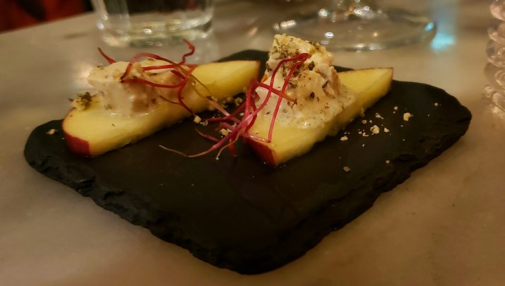 An amuse-bouche of feta on apple started our meal. It was okay.