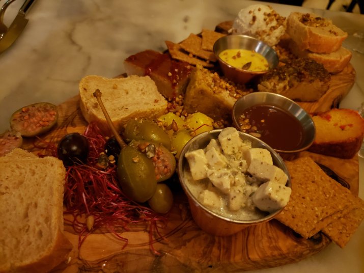 We were not at all disappointed by the cheese plate, the Plantyful. My favorites were the smoked almond cheese and a soft cashew cheese. Neither of us were crazy about the tofu feta.