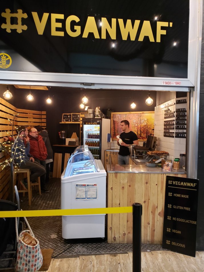 Veganwaf in Brussels is in a shopping area accessible my foot and I was thrilled to find it. We arrived at the end of the day and they were out of chocolate sauce, but we were not deterred.