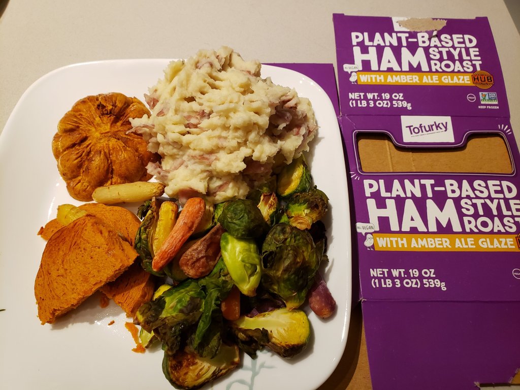 I don’t know when the Tofurky Ham became available, but I had a coupon and Hubby showed interest in trying it. So it came home with me and sat in the freezer for several months. I’m not a huge faux meat eater, but it’s fun to try new things.